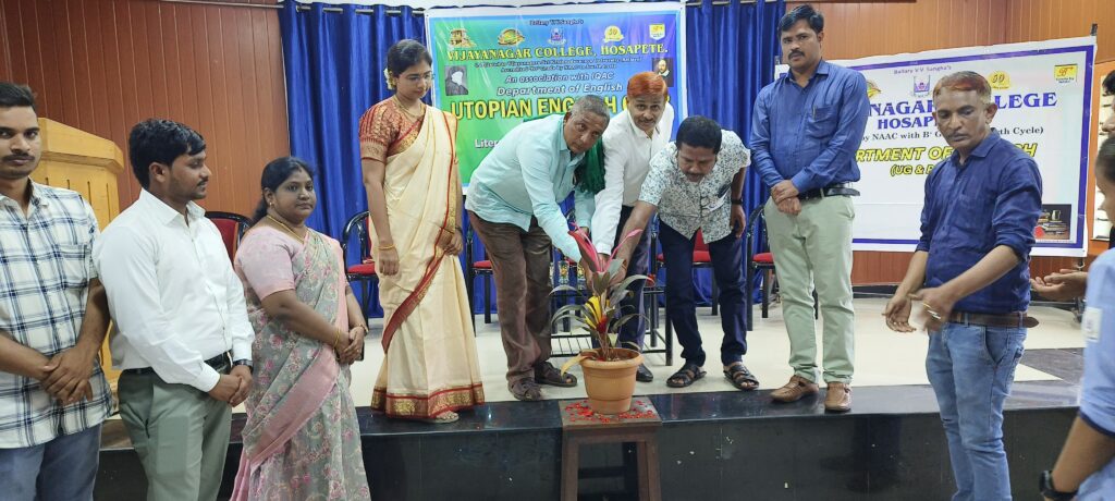 The Department of English in association with IQAC is celebrating “English week”2023-2024 under “Utopian English Club”. Under the event various literary competitions , cultural activities and sports competitions are conducted throughout the week from 1/8/2024 to 7/8/2024. Inauguration of the event is conducted on 1/7/2024 at 11:30 AM. Life members of V.V Sangha Shri Hemareddy and Shri Vasanth Kumar were the chief guests of the programme. Shri Hemareddy addressed the students. He highlighted the importance of agriculture as an occupation in life. He says how much ever educated one is, one must know to respect the farmer as he is the backbone of the nation.